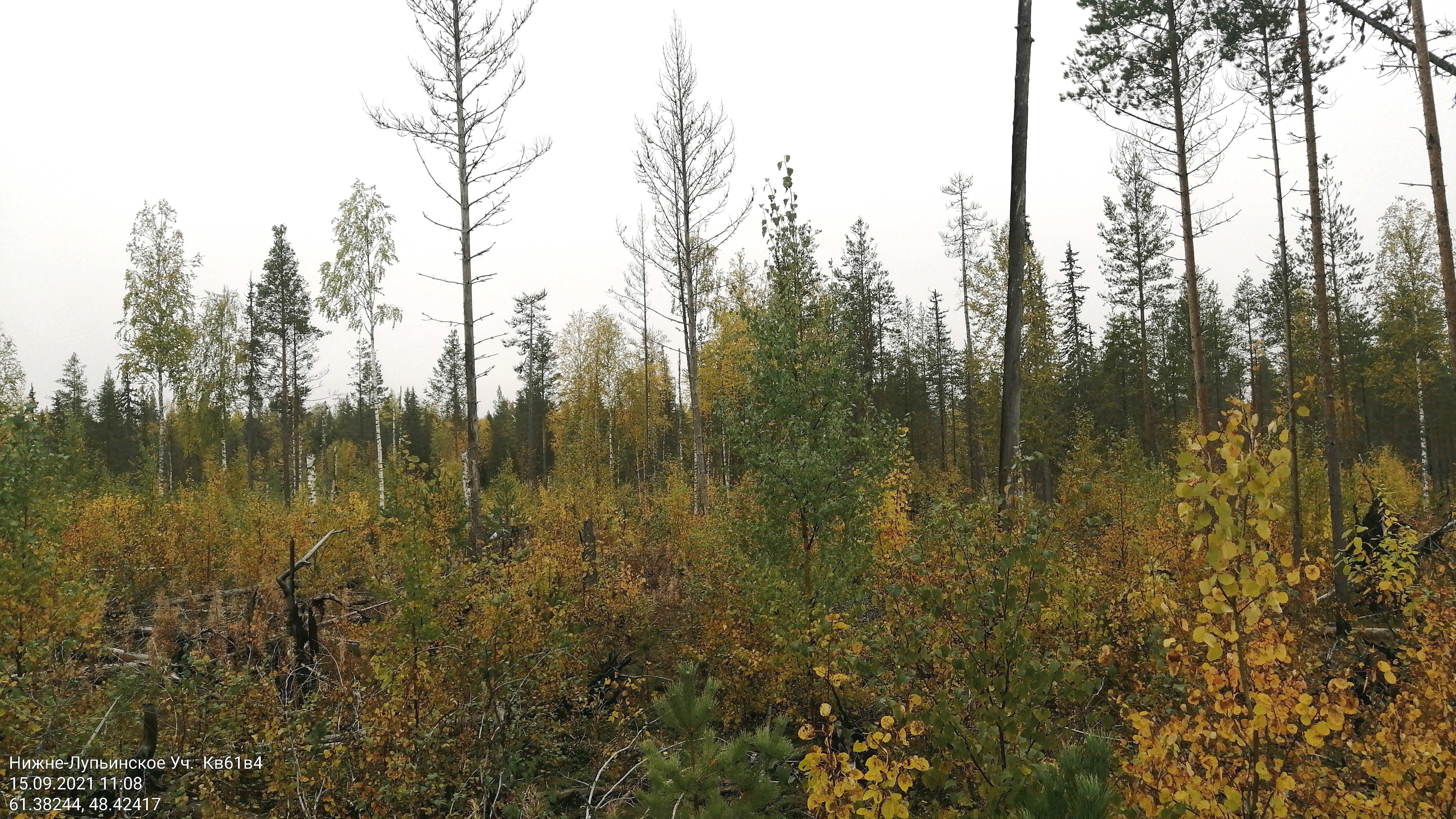 К перечню лесничеств, в которых в настоящее время выявлено наименьшая площадь поврежденных и погибших лесов, относятся леса Холмогорского, Каргопольского, Шенкурского, Устьянского и Вилегодского лесничеств. Обследованные в полевом сезоне 2021 года лесные участки Вилегодского лесничества представлены насаждениями 45-170 летнего возраста. Данные леса представляют собой участки леса с валежной и буреломной древесиной прошлых лет, выпавшей в результате воздействия лесных пожаров. В насаждениях в качестве основной причины ослабления является устойчивый низовой пожар 4-10 летней давности высокой интенсивности. На момент проведения работ санитарное и лесопатологическое состояние обследованных лесов остается стабильным. Повышенного текущего отпада и угроз возникновения очагов вредных организмов не наблюдается. На участках, поврежденных пожаром, происходит интенсивное естественное возобновление хвойными породами, а упавшие стволы деревьев расположены непосредственно на поверхности почвы, что в значительной степени снижает пожарную опасность в лесу. Состояние подроста по качеству охвоения и величине прироста позволяют оценить его как благонадежный. Количество подроста достаточно для естественного заращивания. Проведение санитарно-оздоровительных мероприятий не требуется.